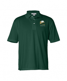 Made of 4.0 Oz., 100% polyester. Features moisture wicking fabric, fashion knit collar with box placket and three white pearlized buttons, and double-needle stitched cuffs and side vents.